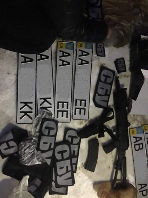 Во время одновременных обысков по адресам фигурантов было обнаружено спецодежду, шевроны СБУ, поддельные удостоверения различных правоохранительных органов, оружие, боеприпасы к нему, ножи, маскировочная одежда, балаклавы, рации и множество государственных номерных знаков, которые использовали во время разбойных нападений, а также наркотические средства и вещи, принадлежащие потерпевшим.
