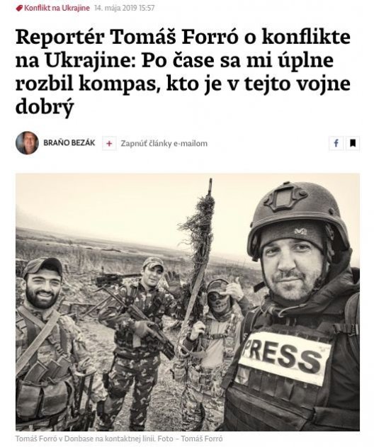 Независимая газета Словакии Dennik N опубликовала интервью со своим корреспондентом Томашем Форро, который, побывав несколько раз в зоне вооружённого конфликта в Донбассе, написал книгу «Донбасс – свадебные апартаменты в отеле "Война"».