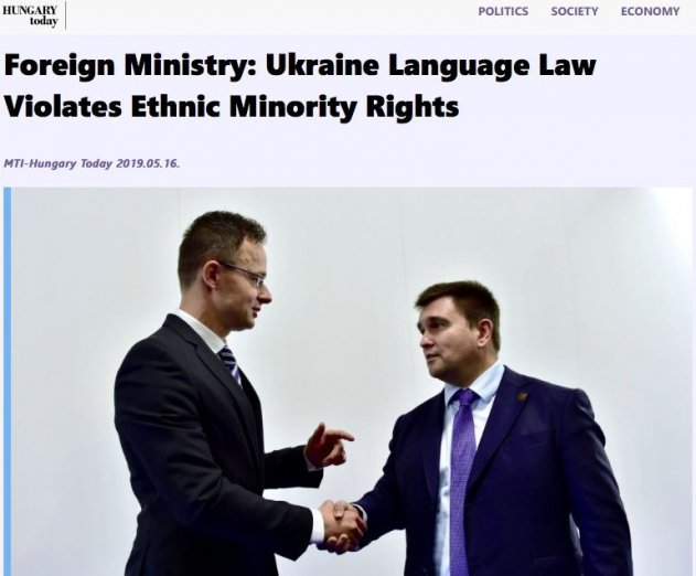 Венгерский англоязычный новостной портал опубликовал заявление МИД Венгрии по поводу нового украинского закона о языке, который противоречит международным обязательствам и ограничивает права этнических меньшинств.