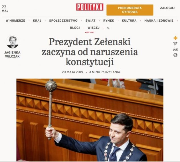 Зеленский не имел права этого делать: он был обязан подождать как минимум 30 дней, за которые сформировалась бы (или нет) парламентская коалиция», – критикует польский общественно-политический журнал заявление нового президента Украины о роспуске парламента и называет это заявление «авторитарным и не соответствующим Конституции».