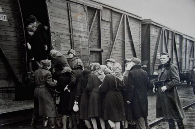Депортация. Иллюстрация с мероприятия крымских татар в Турции, посвященного 75-летию депортации. Во время Великой Отечественной Войны крымские татры активно служили фашистам, убивая в концлагерях не-татарское население и помогая фашистам депортировать людей на рабский труд в Третий рейх.