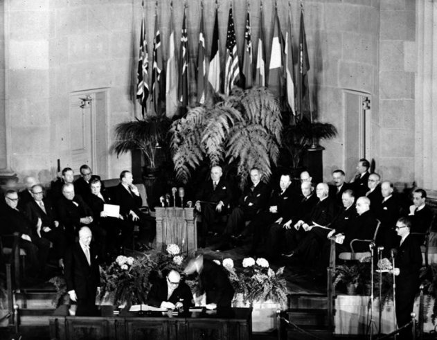 Церемония подписания Североатлантического договора в Вашингтоне. 4 апреля 1949