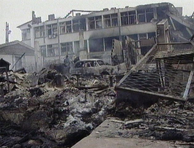 Полицейские казармы в Приштине утром после бомбардировки НАТО. 29 марта 1999