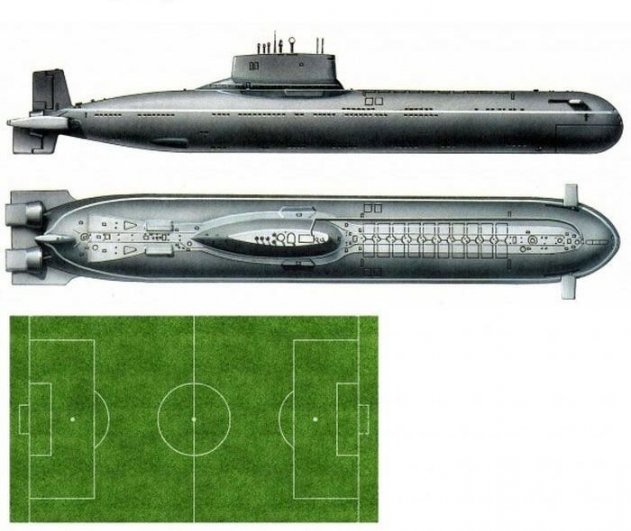 А вот как это поле выглядело бы на фоне подлодки «Акула». Правда, впечатляет?