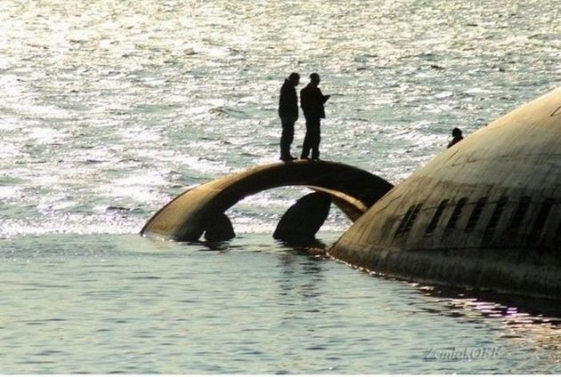 Как правило, большая часть подводной лодки скрыта от наших глаз. Обычно субмарина погружается в воду по белую отметку на корпусе (см. фото выше).