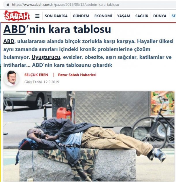 Если на внешней арене США в силах решать многие проблемы, внутри страны все плохо. Главный бич американских властей это дикая наркомания, миллионы бомжей, бесконтрольное ожирение нации, терроризм, убийства, самоубийства и общая депрессия американцев. Турки считают, что США не справляется с ситуацией и теряет статус сверхдержавы.