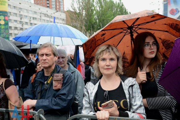 Многотысячный митинг-реквием, посвященный пятой годовщине трагических событий, связанных с обстрелом Донецкого аэропорта, гибелью мирных граждан и развертыванием вооруженного противостояния, прошел сегодня, 26 мая, на главной площади столицы ДНР. «События, которые произошли пять лет назад, разделили нашу с вами жизнь на «до» и «после». Именно в этот день против миллионного мегаполиса Донецка были применены тяжелая артиллерия и авиация. Тогда это не укладывалось в сознании. Киевский режим, не желая признавать выбор Донбасса — независимость, свободу, справедливость, — решил применить все методы, имеющиеся в арсенале. Как военные, так и политические, и экономические. Когда у них ничего не получилось, когда не удалось насадить нам свою идеологию, Киев, не задумываясь, перешел к убийствам. Нам, жителям Донбасса, отводились считанные дни, потом недели и месяцы. И вот уже прошло пять лет… С одной стороны, это годы тяжелого противостояния. С другой – это годы государственного строительства и развития. Пять лет мы с вами изо всех сил пытаемся созидать. Нам нужно именно это. Но увы, война не окончена по сей день, слышны выстрелы артиллерийских систем и стрелкового оружия. Могу сказать одно – свой выбор мы сделали пять лет назад и не свернем со своего пути. Нас не победить и не сломить!» — обратился к собравшимся Глава ДНР Денис Пушилин. «26 мая 2014 года стало поворотным днем в истории Донбасса. Именно в этот день украинские каратели нанесли удар по мирному городу, по мирным людям. Но мы выстояли. И сегодня мы чтим память погибших на поле боя, убитых в своих домах. Военные преступления киевских карателей не имеют срока давности!», — сказал Председатель Народного Совета ДНР Владимир Бидевка.