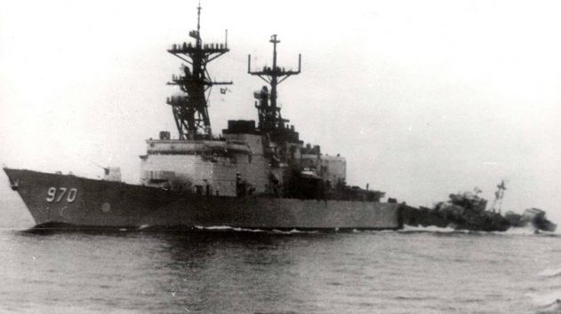 СКР-6 наваливается на корму эсминца Кэрон (фото с борта Беззаветный) В то же время ситуация, когда корабли и самолеты двух сторон, находящихся далеко не в дружественных отношениях, внимательно отслеживают действия друг друга, причем в условиях, когда прямые контакты между политиками и военными сведены к минимуму, всегда потенциально опасна.