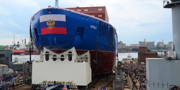 В Санкт-Петербурге праздник! 25 мая 2019 года со стапелей Балтийского завода сошёл атомный ледокол «Урал» — один из самых больших в мире. Это уже третий ледокол серии ЛК-60Я: до «Урала» спустили на воду «Арктику» и «Сибирь». Так зачем России нужно столько ледоколов? Два в одном Сейчас в России используются ледоколы типов «Арктика» и «Таймыр», разработанные и построенные еще в Советском Союзе. Почему два типа? «Арктика» предназначен для большой воды; его работа — пробивать Северный морской путь и добираться до Северного полюса. «Таймыр» обладает меньшей осадкой, что позволяет работать в устьях сибирских рек. Сейчас же оба эти типа постепенно заменят одним — ЛК-60Я. Как? Всё дело в специальных балластных цистернах — по мере заполнения их водой ледокол может изменять свою осадку на два с лишним метра, с 8,55 метра до 10,5. С наименьшей осадкой — спокойно работать на реках, с наибольшей — добро пожаловать в океан. Такой вариант будет гораздо выгоднее: это удобнее и дешевле, чем проектировать и создавать два разных типа. Ледоколам быть А зачем России вообще нужны ледоколы? Странный вопрос для страны, у которой самая протяжённая часть морской границы ежегодно сковывается льдом. Практически никакая серьёзная и постоянная работа по освоению Арктики (как с научной, так и с военной точки зрения) невозможна без ледоколов. К тому же пробиваемый российским газом в Китай Северный морской путь в будущем может стать удобной и проторенной дорогой, которая позволит быстро перебрасывать большие объемы топлива от места добычи до конечного пользователя. Ледоколы — это та самая инфраструктура, что способна развивать российскую экономику почти в прямом смысле. Отрадно, что в ледокольном флоте, особенно после начала работы ЛК-60Я, с Россией практически никто в мире не сможет сравниться. Тем более, что планируемый срок работы новых судов заявлен минимум в сорок лет (320 тысяч часов работы) — и может быть значительно продлён. Поэтому постройка серии из пяти ЛК-60Я закроет для нас вопрос прохода сквозь льды на много лет вперед. Пара слов об «Урале» В отличие от предыдущих судов, «Урал» спускали на воду со значительным количеством надстроек. В таком виде ледокол выглядит ещё более внушительно. Его высота — 52 метра, что сравнимо с высотой девятнадцатиэтажного дома. Длина — 173 метра, это практически размер линейного военного корабля прошлого века (к примеру, линкор «Колорадо» — 190 метров в длину). Чтобы двигать такую махину и проламывать льды, ледокол оснастили атомной двигательной установкой. В её составе — два водо-водяных реактора РИТМ-200, выдающих 175 мегаватт тепловой мощности. Благодаря реакторам «Урал» способен идти на рабочем ходу в 1,5-2 узла сквозь сплошной паковый лёд толщиной 2,9 метра. Лёд бoльшей толщины придётся уже проламывать в несколько итераций, но встречается он не так часто. Как спускают ледоколы Как можно увидеть на фото, на стапелях ледокол удерживает серый металлический задержник приличной толщины. Процесс происходит следующим образом. Сначала крёстная мать (для «Урала» ею стала председатель Центробанка РФ Эльвира Набиуллина) разбивает о борт корабля бутылку крымского шампанского. Затем перерезают ленту, а батюшка освящает судно. Лишь после этого подаётся команда на проверку акватории Невы — свободна ли она. И, если всё в порядке, начинается п