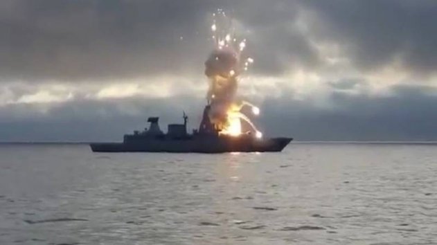 Вот как это может выглядеть. На фото немецкий фрегат F124 Sachsen, пострадавший от взрыва зенитной ракеты SM-2 в пусковой ячейке. На сегодняшний день один из редких кадров повреждения боевого корабля от боевого же оружия