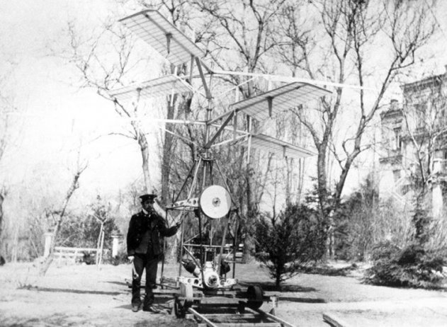 Игорь Сикорский с одним из своих первых геликоптеров. 1910 год