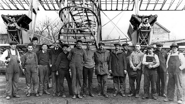 Сикорский (в центре, в куртке с поясом) среди рабочих и инженеров — участников постройки S-29-А