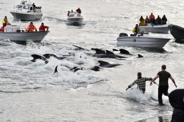 Следуя жестокой традиции, жители Фарерских островов загоняют в небольшую бухту беззащитных животных и пронзают их копьями, из-за чего вода окрашивается в красный цвет. На этот раз они убили 130–150 чёрных дельфинов — гринд, как их называют местные, и 10–20 короткоголовых дельфинов, сообщает Unilad.