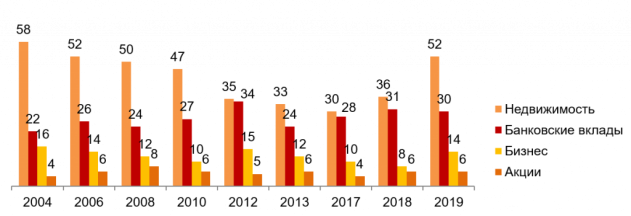 Стоит отметить, что уровень привлекательности вложения в бизнес почти вернулся к докризисному показателю 2012 года – 14% россиян готовы вложить свои сбережения в собственный бизнес или бизнес близких друзей, родных. А вот покупка акций в качестве вложения средств интересует, как и раньше, лишь 6% респондентов.