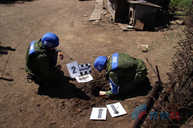 В ходе анализа фрагментов примененных боеприпасов, повреждений, установлено следующее, обстрел н.п. Донецкий, Голубовское велся с применением минометов калибра 120мм, минами ОФ-843Б.
