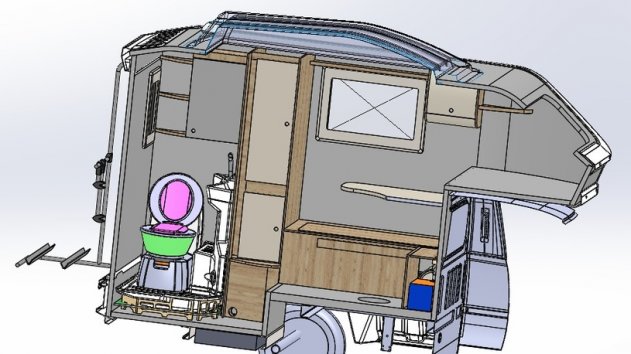 Кухня оснащена плитой с одной конфоркой и раковиной. Более того, имеется ванная комната "с улучшенной эргономикой пространства и эксклюзивным дизайном" - она оборудована душевым поддоном, туалетом, раковиной и шкафом для хранения косметических принадлежностей. Душевой поддон сделан из ABS-пластика с акриловым защитным покрытием, с нишей для монтажа туалета кассетного типа с поворотным (на 180 градусов) сиденьем, изготовленным из пластика с керамической вставкой.
