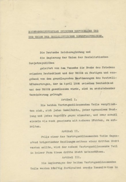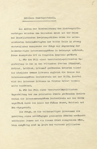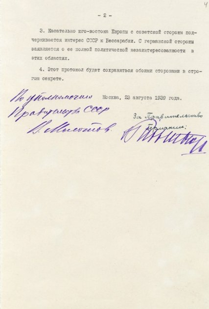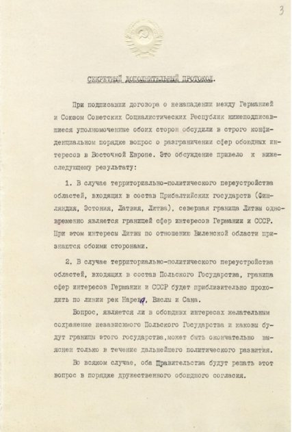 Впервые опубликованы сканы советского оригинала Договора о ненападении между Советским Союзом и Германией от 23 августа 1939 года и секретного дополнительного протокола к нему. Ранее историкам были доступны лишь фотокопии немецких оригиналов этих документов.