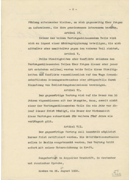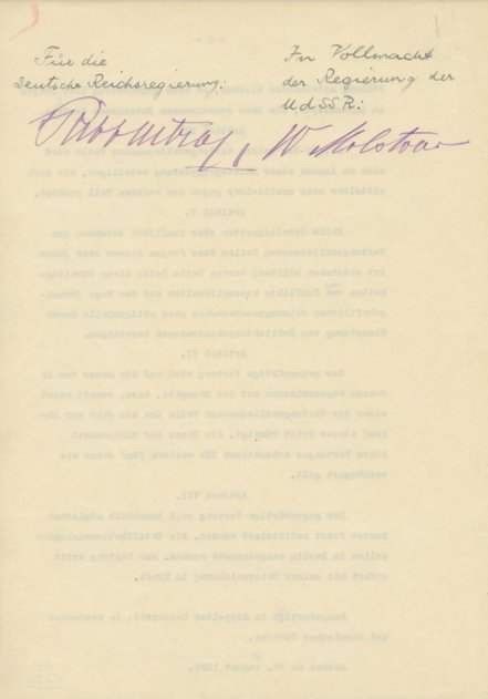 Договор о ненападении между СССР и Германией. 23 августа 1939 г. Советский оригинал на немецком языке.