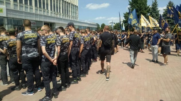 В Харькове несколько сотен националистов проводят пикет перед зданием Дворца спорта, где в 14:00 начался объединительный съезд партии “Доверяй делам” с участием мэров Харькова и Одессы Геннадия Кернеса и Геннадия Труханова.
