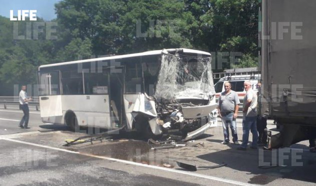 Виновником жуткой аварии мог стать водитель автобуса. Он въехал в грузовик МАН, который пропускал людей на пешеходном переходе. Источник