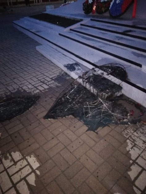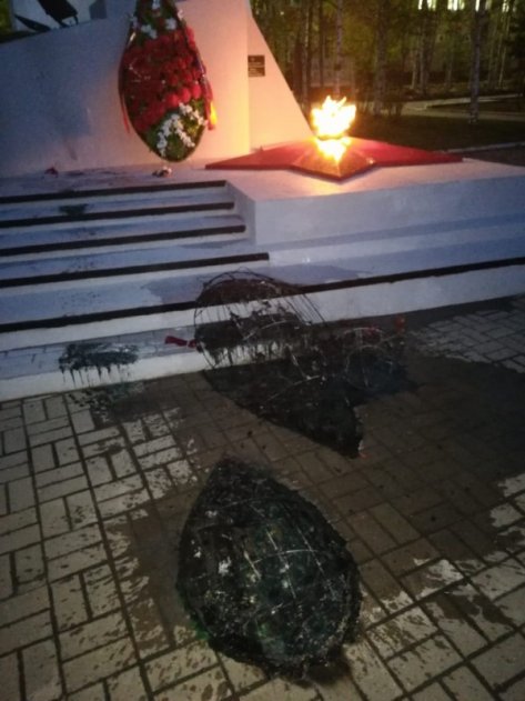 «Да что же это такое делается у нас?! Сначала в апреле один....надругался над Вечным огнем в 3 мкр. города, и его поймали. Тогда же в апреле показали вандала на весь свет, завели на него уголовку, дав понять остальным, что гадить на памятник и вандальничать - дело наказуемое! Ну, и что?! А вот что! Вот, смотрите (фото)! Прошлой ночью несколько малолетних дураков полиция поймала. У памятника "Воину-освободителю" сожгли пару венков! Пожарные на место выезжали» - сообщает очевидец событий.