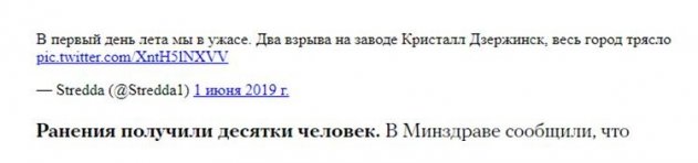 Но британское издание Mirror осветило произошедшее в апокалипсических тонах. Ни много ни мало они сравнили взрыв в Дзержинске с ядерной катастрофой в Чернобыле.