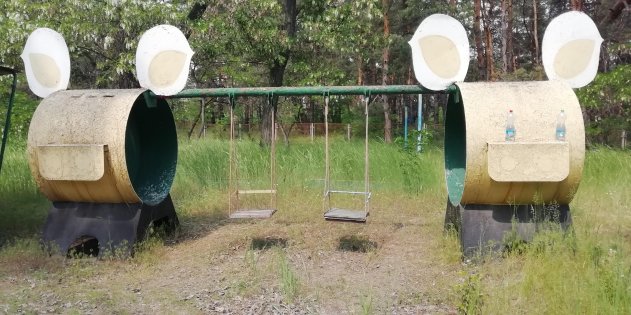 Распределили всех на две команды и с разным интервалом развезли в разные места прохождения сборов. Попал я в большую, которая отбыла в курортную зону с лесом и Днепром. Кто знает прилегающую к Запорожью местность, знает Разумовку и её окрестности как место паломничества на пикники и турпоходы с палатками по выходным и летним отпускам. Расположилось подразделение на территории бывшего пионерлагеря, давно не используемого по своему назначению, но к великому моему удивлению, не разрушенного за времена националистического напора и регресса вспять. Всё выглядит как в Припяти, точно так же законсервировано временем и им же медленно поедаемо. Встречающее название со словом гвардия с символом которой борются и запрещают пятый год. Композиция «Свиногейт» как бы олицетворяющая буйствующую коррупцию под сенью особого положения и гражданской войны. Корпуса, беседки, лес, пляж и трава по пояс там где били барабаны, трубили горны и развевались кончики галстуков под салют.
