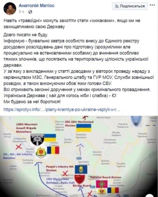 В Киеве снова грандиозный «кипёж» – в смысле, закипело и срывает крышку. Главный военный прокурор Анатолий Матиос спешно и немедленно созывает совещание по поводу анонимного ролика в YouTube, автор которого придумал фантастический, на первый взгляд, сценарий: 2022 год, Румыния коварно откусывает от Украины в свою пользу Буковину.