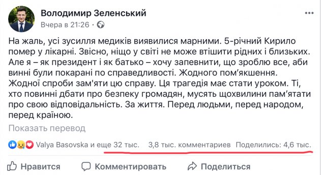 Под постом в фейсбуке, который написал президент Зеленский, тысячи разгневанных украинцев требуют отставки Авакова и защиты от полицейского беспредела для себя и своих детей.