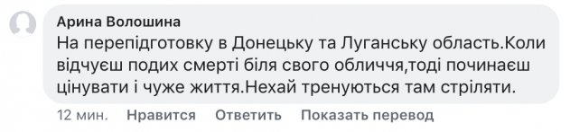 Для не читающих на мове — перевожу: «на переподготовку в Донецкую и Луганскую область… пусть тренируются стрелять там».