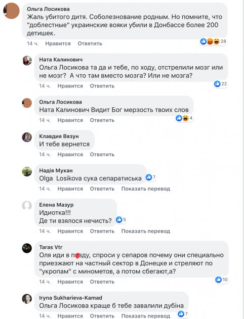 Но и это ещё не всё. Пролистав более чем половину их почти четырёх тысяч комментариев под постом Зеленского, я нашла всего одно упоминание про Донбасс.