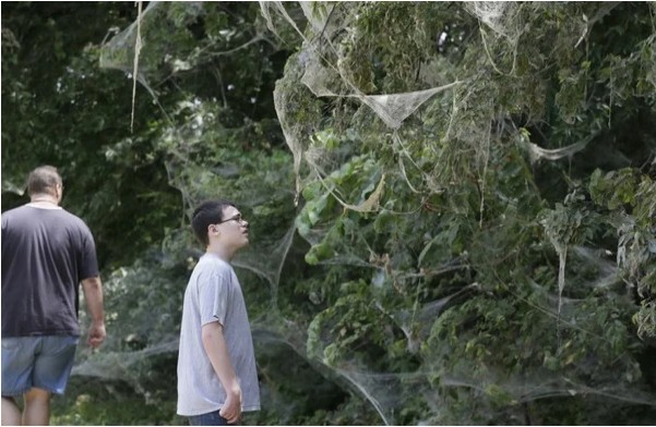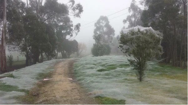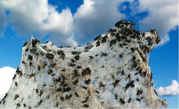 Когда природа делает ремонт, и надо мебель от пыли прикрыть Как, например, случилось в Австралии. Вы ведь не забыли? Про миллионы пауков, нашествие, апокалипсис и прочий новостной позитив? Так вот, да, было такое. Году эдак в 2012 (в преддверии несостоявшегося конца света, видать) в австралийском городе Ваг-Вагг в штате Новый Южный Уэльс произошло сильнейшее наводнение из-за ливней. В таких случаях те, кто не умеют плавать, пытаются улететь. Пауки не дураки и использовали природные способности, смастерив из собственной паутины подобия воздушных шаров, чтобы спастись от воды, и выпуская кучу паутины, покрывавшей все вокруг толстым слоем.