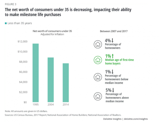 Как выразились авторы отчета "это поколение драматично отличается от предыдущих с финансовой деградацией их чистой стоимости на 34%". Сопровождается это, естественно, от падения доли, живущих в "своих" домах (на 4%) до падения доли имеющих доход выше среднего (на 5%). А также такими сомнительными рекордами как 7% образовательных должников США рассматривают суицид как способ спасения от диких долгов.