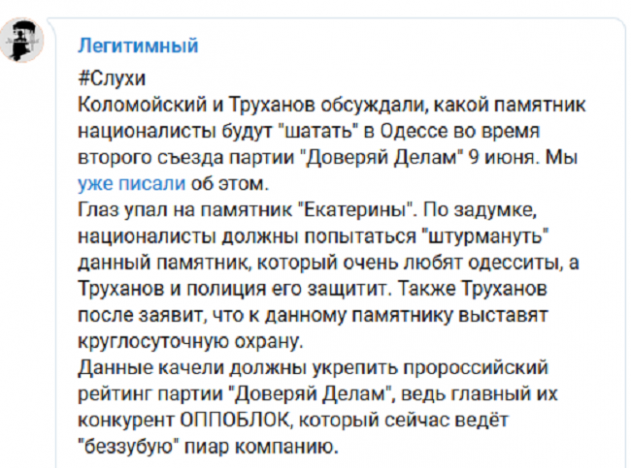 Также отмечается, что Коломойский и Труханов этот «хитрый план».