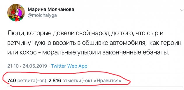 Я не понимаю, как и в какой реальности живут такие люди. Они сознательно проходят мимо полок с отечественными продуктами с закрытыми глазами? И покупают только то, где производителем значится не Россия?