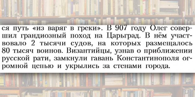 Учебник «Русского слова» обходит многие подводные камни, но один прокол всё же допускает. Он пишет, что в 971 году «в городе Доростоле войско Святослава окружила стотысячная византийская армия». Вообще, специалисты по Византии оценивают численность войска Иоанна Цимисхия в 30-40 тысяч воинов — для Средневековья это очень много! А цифру сто тысяч взяли из ПВЛ.
