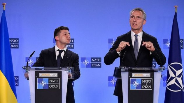 Не успев переступить порог авиалайнера, В. Зеленский изрёк: «Стратегический курс Украины – на приобретение полноправного членства в ЕС и НАТО. Это закреплено в Конституции Украины и остается нашим неизменным внешнеполитическим приоритетом».