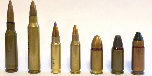 Слева направо: 5,45x39, 5,56x45, 5,7x28, 4,6x30, 9x19 FMJ, 9x19 7N30, 9x21 SP-10 Более всего в этом преуспели бельгийцы, создавшие в 1990-х патрон 5,7x28 SS190 и оружие под него — пистолет-пулемёт FN P90 в компоновке буллпап и пистолет Five-seveN. Чуть позже на ту же стезю ступил и англо-германский альянс в лице «патронщиков» из Royal Ordnance (RO) и оружейников «Хеклер-Кох». Исходно под созданный RO патрон 4,6x30 мм с бронебойной пулей разрабатывался не только пистолет-пулемёт НК МР7, но и пистолет НК Р46. Однако работы по последнему закончились на стадии экспериментов — эффективность микрокалиберного пистолета оказалась явно недостаточной. Да и его 5,7-мм бельгийский конкурент Five-seveN хоть и производится серийно, но большого успеха на рынке армейского оружия не снискал.