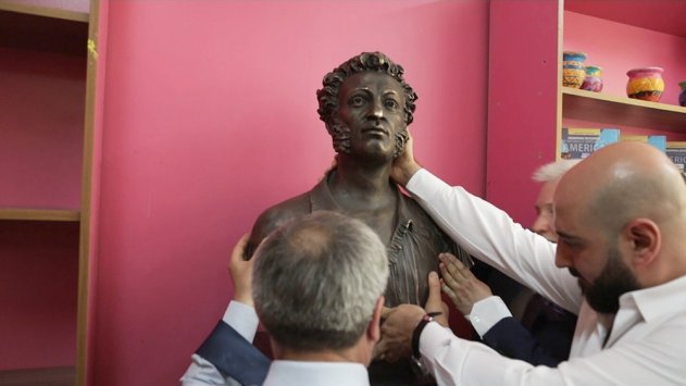 Наше смятение от неловкости за столь торжественный прием продолжалось и в момент установки бюста, переданного в дар школе Союзом писателей России, и особенно от концерта школьников, которые запели под аккомпанемент квартета струнных инструментов и аккордеона песню на слова Алексея Фатьянова на русском языке: