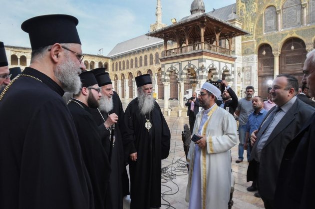 Вместе с Патриархом Иринеем в мечети Омеядов по пути к гробнице св. Иоанна Крестителя