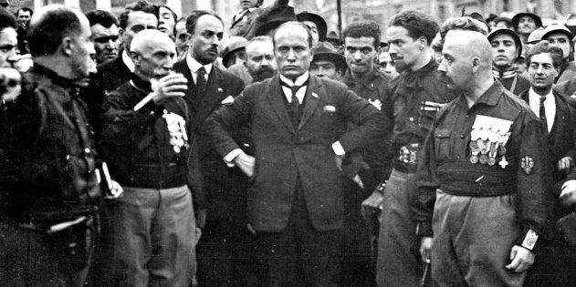 Муссолини во время «Похода на Рим», 1922 год Дальнейшее стало выпуклой и бескровной иллюстрацией процессов, которые позднее происходили и в нацистской Германии. Массы ещё кричали «ура-а-а», но вождю уже была важна не любовь толпы, а поддержка крупных собственников.
