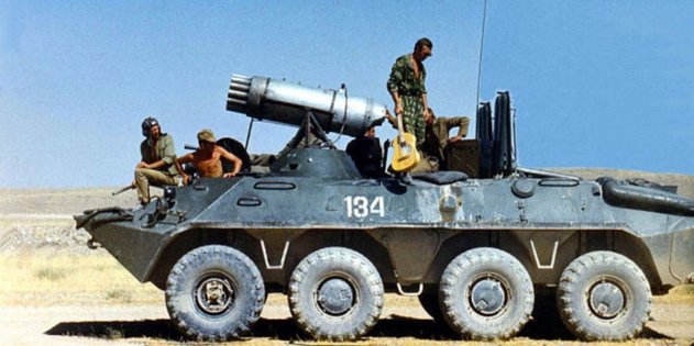 Блок НАР, установленный на БТР-70 ОКСВА в Афганистане