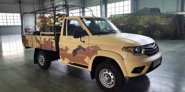 «УАЗ-Карго», оборудованный для перевозки 120-мм миномёта «Сани»