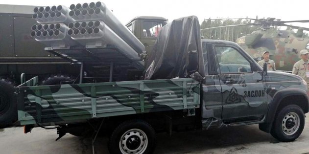 В прошлом году питерский НТЦ «Заслон» (бывшее ОАО «Ленинец»), специализирующийся на выпуске радиолокационного оборудования, решился на разработку лёгкой РСЗО. На шасси «УАЗ Карго» — на чём же ещё! — расположена боевая часть в виде четырёх блоков для пуска неуправляемых авиационных ракет (40 направляющих). Дальность системы — до четырёх-шести километров. Изначально новые блоки 9-А-5013 создавались для вооружения штурмовых вертолётов, а в счетверённом виде стали комплексом залпового огня «Сель».