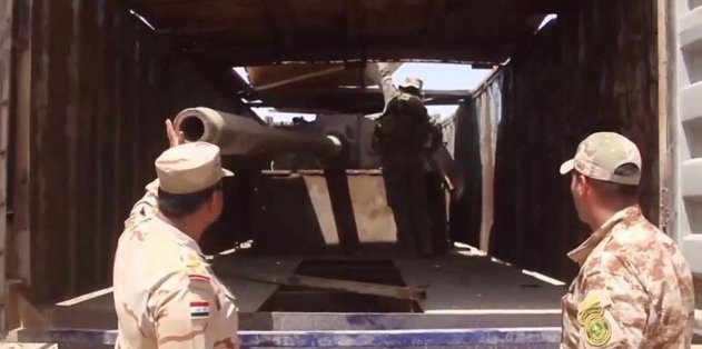 Фура боевиков ИГ* со спрятанной в контейнере башней танка Т-55