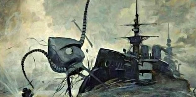 Справка. Этот самый «Полифем» действительно любопытная штука. Его построили в единственном экземпляре. Вооружался «Полифем» торпедами, лёгкими орудиями — и подводным тараном. Первоначально предполагалось, что он будет врываться во вражеские порты и хулиганить там с фатальными последствиями для обнаруженных судов. Самая известная акция «торпедотарана» — это учения, на которых экипаж тренировался прорываться в гавань Кронштадта. Но от встречи с береговой артиллерией Кронштадта «торпедотаран» счастливо уберегся. Зато вот Уэллс бросил его в бой с марсианами. Дальше «Война миров» попала в руки переводчиков, которые решили не мудрствовать лукаво и разжаловали экзотическое чудо-оружие в обычный миноносец.