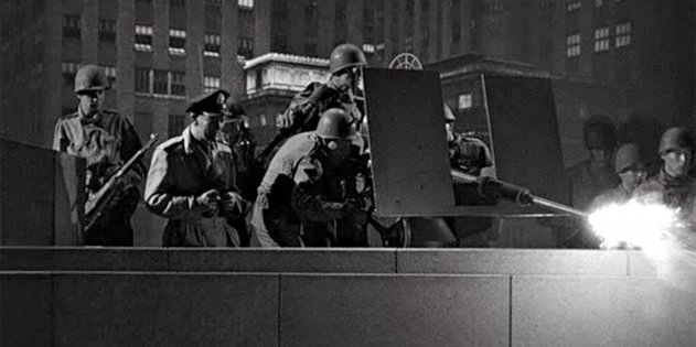 А зря — динозавр вылез из океана и учинил в Нью-Йорке эпический погром. Тут-то армия, точнее Национальная гвардия, и спохватилась. Подвезли 20-мм зенитки, базуки… И почти забили зверюгу.