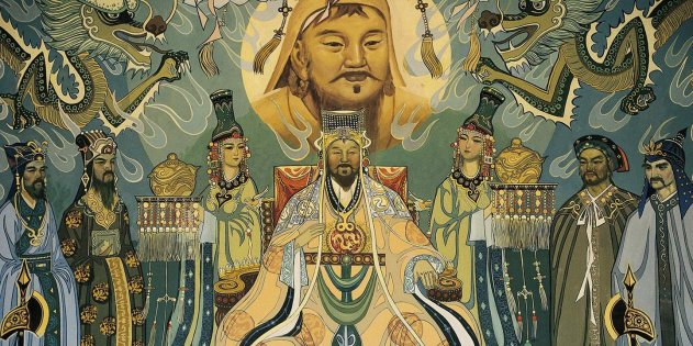 Изображение Чингисхана с его придворными из Эджен Хоро Корректно ли называть эти династии завоевателей китайскими? Спорно. Всё равно, как если бы мы считали, что Русью в XIII–XIV веках правила династия чингизидов, и рисовали бы на исторических картах границы нашего государства до Закавказья и Средней Азии.