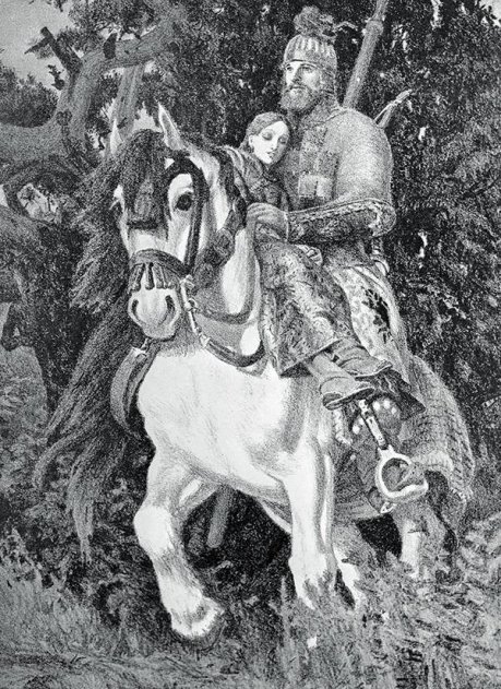 Добрыня Никитич и Забава Путятична, иллюстрация Е. Кибрика