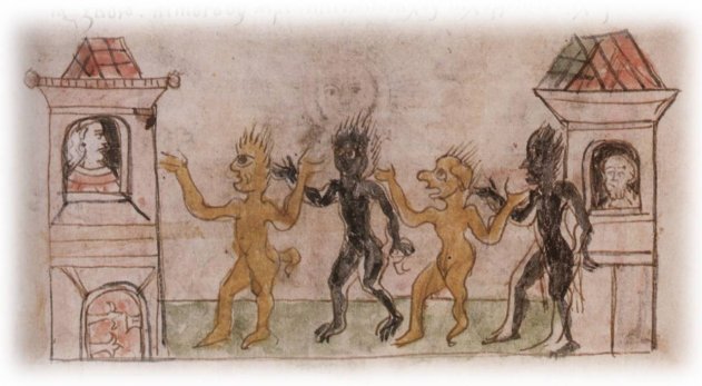 "Предивное чудо представлялось в Полоцке. Ночью слышался топот, бесы, точно люди стеная, рыскали по улицам. Если кто выходил из дома, желая увидеть, тотчас был уязвлён бесами и от этого умирал, и никто не осмеливался выходить из дому. Затем бесы начали днём появляться на конях, а не было видно их самих, видны были только коней их копыта. И так они ранили людей в Полоцке и его области. Поэтому люди говорили, что навьи бьют полочан".